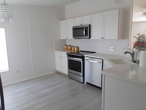 Move right into this gorgeous updated home. Light and bright with updated kitchen with new stainless appliances, countertops and sink. Laminate floors throughout, inside laundry, guest bath has new vanity, toilet and surround tub. Enjoy the all-season Florida room with ceramic tile and new blinds. This home has everything to enjoy the Florida lifestyle. Plus lower lot rent in this 55-plus community.