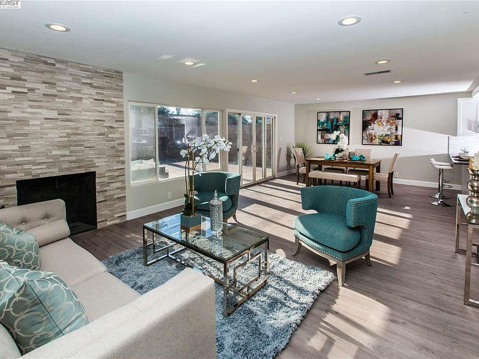This immaculately renovated 1,705 sq. ft single-story home is located on a huge corner lot and boasts 5 bedrooms and 3 full baths (two of which are masters with en suite bathrooms). Upon entering, you will find a great room with an open concept living space with fresh paint, recessed lighting, 3D fireplace and dining area ready to accommodate a large dining table for entertaining. Gourmet kitchen is a chef's dream and has been impeccably upgraded and is open, light and bright with high ceiling, recessed lighting, and French doors, shiny quartz countertops, granite island with storage, custom raised-panel cabinetry with task lighting, carrera marble backsplash, new gourmet stainless appliances, double oven, professional range and vent hood, state-of-the-art fixtures, barn sink, walk-in pantry and plenty of storage and space room for more than one chef! New engineered flooring throughout, beautifully renovated bathrooms, beautiful molding in bedrooms, walk-in closet in the main master suite. Built on a slab foundation, new copper piping, 5 year old roof, dual pane windows, irrigation timer, brand new electrical throughout the home, RV parking and large side yard. Private lot with mature landscaping makes this a must see!! Open house this weekend 7/29 - 7/30 1pm - 4pm