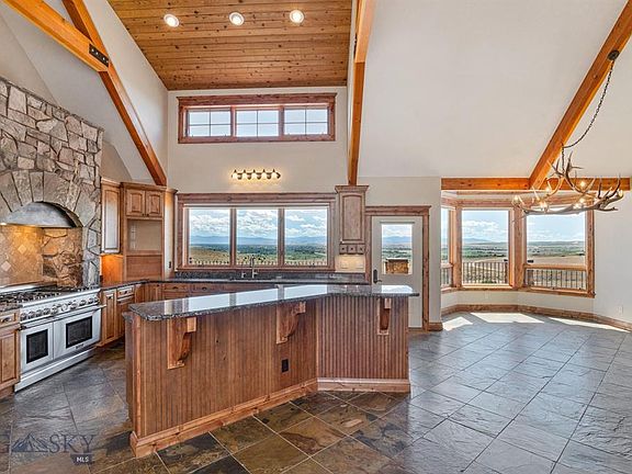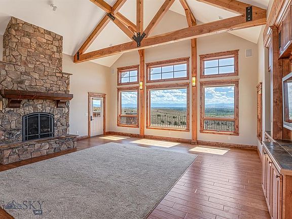 "STUNNING southern views of mountain ranges, rivers and valley from this custom home on 20+ acres in the Gallatin River Ranch. Relax with impressive vaulted ceilings, exposed timber framing, and massive picture windows in your great room and gourmet kitchen. Appointments include custom built-ins, granite counter tops, and Montana moss rock fireplace and range. You'll enjoy access from your 3-car garage, mud-room and laundry. The luxurious main level master bedroom and en-suite bath features custom travertine tile, walk-in shower, double-vanities and soaker tub. Downstairs, views continue with a finished bedroom, family/rec room, private office (included in bedroom count) and unfinished 800 SF guest apartment/ADU with separate entrance. ADU is framed and plumbed for an extra bedroom, full bath, kitchen/living area, etc. This incredible home overlooks a beautiful private ranch, rivers, state & conservation land. Your private access to the East Gallatin river is just 2 minutes away.