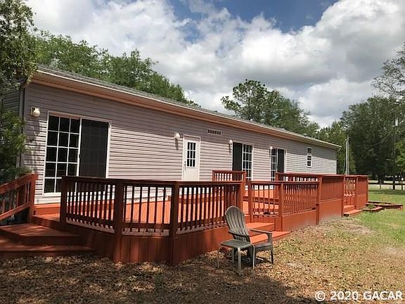 Paved road frontage leads you to this fenced 6.61 acres with scattered trees. Beautiful Homes of Merit with tape and textured walls, crown molding, 9 foot ceilings and 2356 square feet of heated & cooled living space. Light & bright island kitchen with Dining area and sliding glass doors opening to a tiered deck for outdoor gatherings. Entertain any guests in your family room with wood burning fireplace and wet bar. Large Master suite with walk in closet, separate shower and garden tub and double sinks in vanity. Exterior features include mature shade trees, 24 x 36 two car garage with 12 x 24 work shop, 100 amp electric service and water. This property comes with a bonus 2nd Homes of Merit year 2002 with 3 Bdrm and 2 Bath, galley style kitchen new metal roof, appliances including washer & dryer. Another bonus is easy access to the Itchutucknee To O'leno Bicycle Trail. I think you better hurry and call for an appt to see.