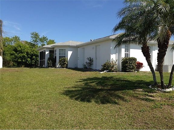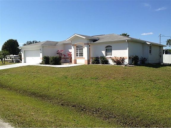 Come check out this single family home on a corner lot! Open floorplan with vaulted ceilings, split bedrooms and new porcelain tile installed throughout. Kitchen features all appliances with new oven, microwave, newer refrigerator and a dishwasher. Home includes an inside laundry room with washer and dryer! Home features a separate dining are and breakfast nook overlooking backyard and screened in lanai. 2 Car Garage with fruit trees in the yard! Come see this beauty!