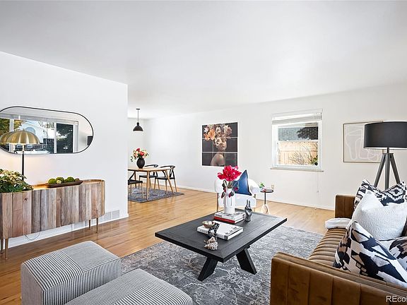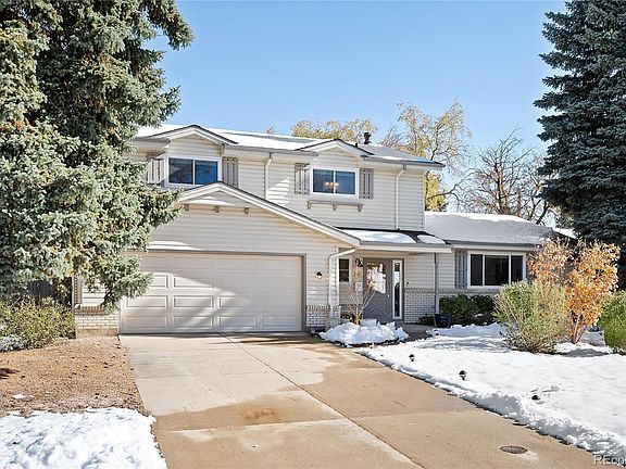 Retro details and modern updates intertwine in this Lynn Knoll home. Picturesque landscaping and mature trees frame the exterior crafting an inviting first impression. Enter into a bright and open layout wrapped in fresh wall color. A spacious living room extends into a dining room illuminated by a chic pendant light fixture. Highlighted by generous cabinetry, the kitchen overlooks a cozy den grounded by a classic fireplace. Sliding glass doors open to an enclosed porch, perfect for leisurely relaxation. Four bedrooms include the primary complemented by an en-suite bath. Downstairs, the finished basement presents flexible living space for hobbies or storage. A low-maintenance backyard offers a greenhouse and ample space for gardening. Centrally located near schools, parks and recreation, this home provides proximity to the light rail, I-225, Del Mar Park and Pool, The Medical Center of Aurora, Aurora Hills Golf Course, the High Line Canal, Town Center at Aurora and the Civic Center.