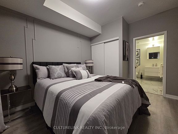 Welcome to this newly built modern 1+1 bedroom, 2-bathroom condo in the heart of Downtown Markham. This bright and spacious 627 sq ft unit offers a functional open-concept layout with 9 ft ceilings, laminate flooring, and a versatile den- ideal for a home office or guest space. The upgraded kitchen features Bosch stainless steel appliances and granite countertops. Enjoy added convenience with two full bathrooms, one parking spot, and a locker, all with low maintenance fees. This building offers premium amenities: Outdoor Basketball Court, Gym, BBQ terrace, Games Lounge, Party Room. Steps away from York University Markham Campus, Cineplex, Restaurants, Shops. Minutes To Hwy 404 & 407 and GO Station. Bus stop At Doorstep. Top Ranking Unionville Schools.