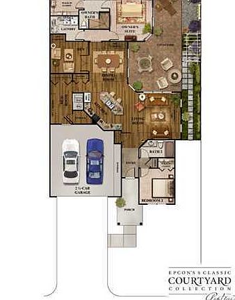 Come out and experience the European-Country Style, Maintenance Free - No Age Restriction- living and put down new roots in a great community.The Portico is a beautifully designed, detached, on a boutique-style lot. It includes access to your very own enclosed private courtyard, and architectural accents abound. From our cobblestone stone and brick exteriors to our gourmet kitchens with islands, no detail is spared. The Portico w/ Bonus Suite features three spacious bedrooms, den, mud room, three full baths, and a screened porch,off the owner's suite in addition to an extra large 2.5 car garage. Enjoy views of your courtyard from the bedroom suite, dining room, kitchen, and living room. Amenities include professionally landscaped, association-maintained lawn areas,master homeowner insurance policy, a fully furnished clubhouse with fitness facility, deluxe kitchen, gathering room, pool, and paved walking trails. If square footage is important - MEASURE!!