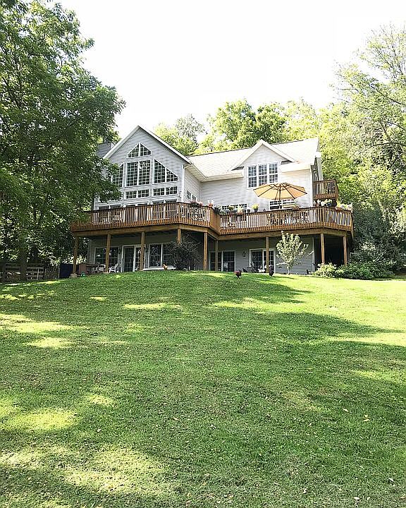 Resort like living with amazing views from all angles of this rare find of acreage just a couple miles outside The Galena Territory. This incredible property is also just a couple miles west of Apple Canyon Lake , therefore nestled perfectly between them both and the incredible Mississippi River is approximately 30 minutes away. Park like yard boasting a stocked pond and docks for your enjoyment. Property is USDA certified organic. This custom built home features wood floors throughout, radiant heat floors in walk out basement, built in stainless steel appliances, X-wide deck around house, enormous kitchen pantry, balcony off master bedroom, steam shower, floor to ceiling windows, two wood burning fireplaces with floor to ceiling real stone. Four bedrooms and three full bathrooms. Freshly painted. Wild berries galore! Go out your front door for buckets full of black raspberries, elderberries, red raspberries, mulberries, morel mushrooms, apples and walnuts. Ride your horse, walk or whatever your pleasure, on the trails meandering through the woods. Deer, turkey and other natural wildlife sure to be seen! Rock bottom creeks and beautiful rock outcroppings. Four board fence and horse safe fence around all paddocks. Automatic waterers within paddocks. The 136 acres consists of tillable, pasture and wooded acreage. Agricultural taxes, much much less than automated estimate from Zillow. More photos coming! Newer photos at end of all photos. Price increase pending on property. Viewing by appointment only. Please leave voice message with by owner number listed at the end of this listing. Do not miss checking this one out!