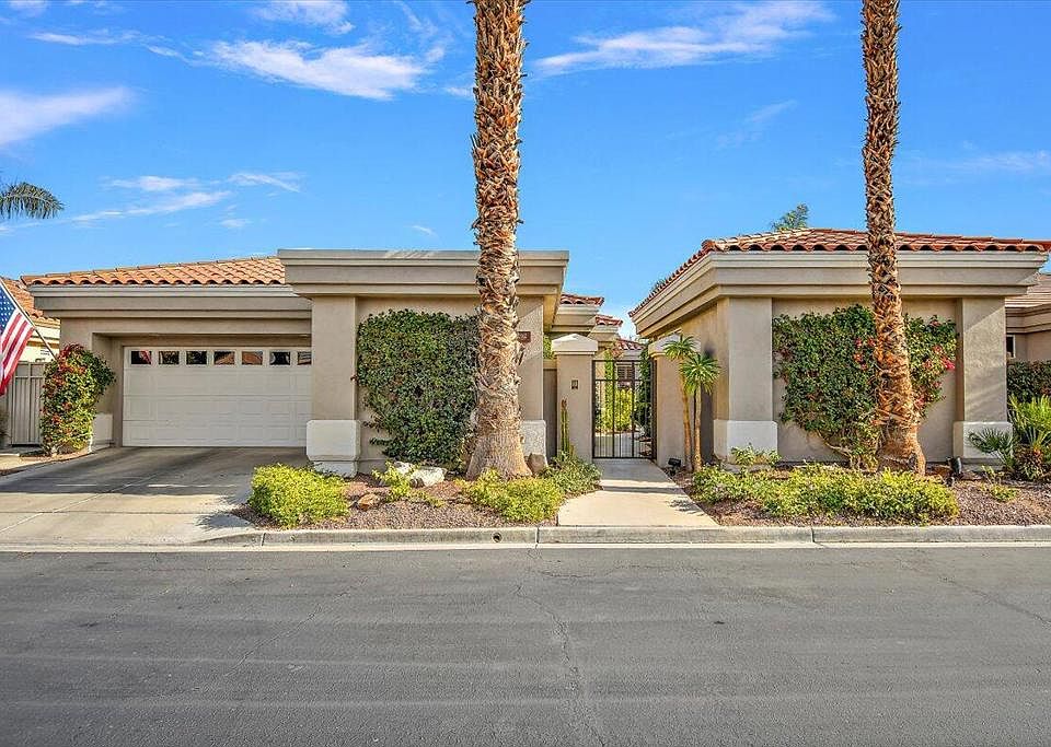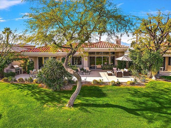 Lovely, sophisticated elegance will greet you as you walk into this stunning Palo Verde 5 home, in the welcoming golf course community that is Indian Ridge Country Club. This home boasts 4 bedrooms and 4.5 baths, including a detached Casita with separate patio. Home currently is set up with two offices which can easily be used as bedrooms, each with own ensuite. This home boasts stunning elevated double fairway views of the Around Palmer Grove course, holes 9 and 10, along with our beautiful mountains in the background. Open floor plan invites you outside to enjoy your beautiful views, while you entertain with your built in barbecue island and there is plenty of room to add a built in pool or spa! On cooler nights enjoy your beautiful linear fireplace while you relax in your living room with friends. This home is built to enjoy life in! Come see for yourself. Nothing is missing here! Home is sold furnished per inventory list, some artwork available outside of escrow. Club membership is available, no waiting!