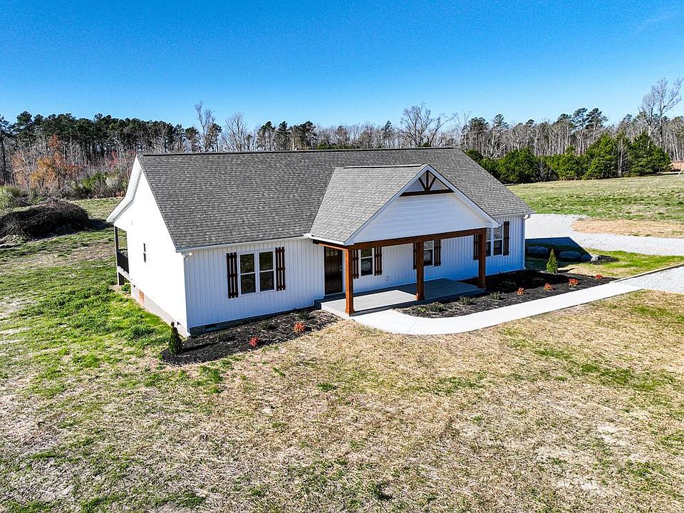 Brand new home on 5 acres in Nottoway county! Zoned agriculture so bring your horses or chickens! Beautiful custom built home with large bedrooms and open floor plan. Primary suite on one side of the main living area and two bedrooms with shared full bathroom are on the other side. Full back porch for sitting and enjoying the view. There is a 1000 sq ft loafing shed that would be perfect for horses or small ruminants. The loafing shed has its own well. The home has a concrete walk, planted pines, and nice gravel drive and parking area. Additional acreage may be available if desired. Located close to Fort Picket and Blackstone.