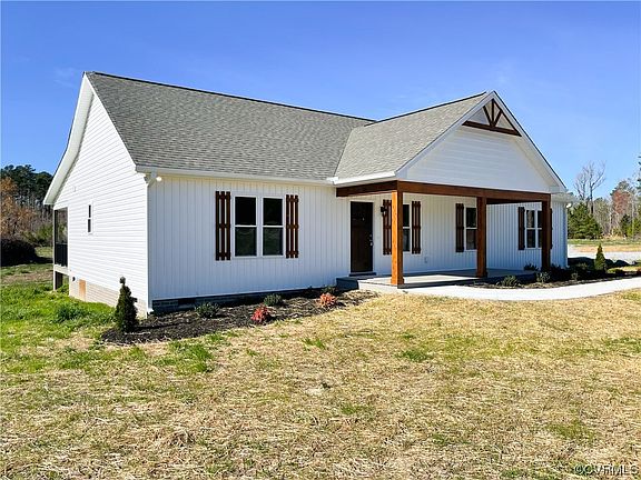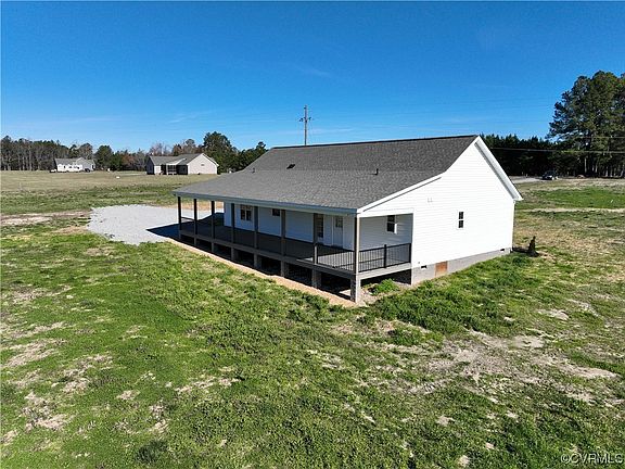 Newly constructed home on 5.7 acres in Nottoway County! Recently surveyed with a 2 acre fenced in pasture. Zoned agriculture so perfect for your horse, chickens, goats, or a few sheep! Seller paid concessions will be considered. Beautiful custom-built home with large bedrooms and open floor plan. The primary suite is on one side of the main living area and two bedrooms with shared full bathroom are on the other side. Full back porch for sitting and enjoying the view. There is a 1000 sq ft loafing shed that would be perfect for a horse or small ruminants. The loafing shed has its own well. The home has a concrete walk, planted pines, and nice gravel drive and parking area. Additional acreage may be available if desired. Located close to Fort Picket and Blackstone.