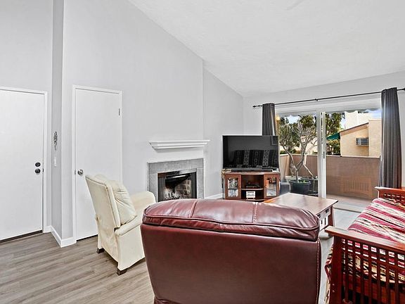 Nestled in the serene neighborhood of Bonita, California, awaits this one-bedroom condominium that seamlessly blends elegance with an inviting atmosphere. This exceptional home features a magnificent vaulted ceiling that adds a sense of space and grandeur. The owner has spent the last 2 years meticulously remodeling everything in the unit. Upon entering, you are greeted by a bright and open living area that effortlessly merges with the dining space. The vaulted ceiling creates an expansive ambiance, accentuating the abundant natural light that filters through a large stained-glass window, infusing the space with a warm and welcoming glow. The living area is tastefully designed, with a wood burning fireplace, perfect for relaxing on those chilly evenings. The adjacent dining area offers an intimate setting for enjoying meals, while the large sliding glass doors lead to a private balcony, where you can bask in the beauty of the surrounding views and revel in the gentle breeze. All wood on the balcony was also replaced with composite material. Windows and the sliding door are newer and double-pane. The kitchen features newer appliances (stove, refrigerator, dishwasher), exquisite quartz countertops, and new cabinetry for storage. Whether you are whipping up a gourmet feast or preparing a quick snack, this well-appointed kitchen provides the ideal space to unleash your culinary creativity. Retreat to the tranquil bedroom, where comfort and tranquility blend harmoniously. The room easily accommodates a queen or king sized bed. There are TWO closets (one of which is a walk-in), providing ample storage for your wardrobe, ensuring a clutter-free environment. The elegant bathroom was redone with quality and functional finishes. Immerse yourself in the large tub or indulge in a refreshing shower. A stylish vanity with a sleek countertop and a generously-sized mirror completes the space. This one-bedroom condominium in Bonita, CA, also offers a range of desirable amenities. Residents have access to a club house, a sparkling swimming pool & amazing hot tub, and well manicured communal areas. Conveniently located near shopping centers, dining establishments, and vibrant entertainment options, this condominium offers the best of both worlds—tranquil living in a desirable neighborhood with easy access to the vibrant city life.
