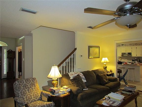 Away from the city, yet so convenient! Nestled amid other nice homes on a quiet cul-de-sac. Impressive foyer with wood flooring. You'll be enthusiastic about this dazzling kitchen with 5-burner gas range, work island and cabinets & storage galore. This brick home has a large master suite downstairs and 4 bedrooms upstairs with large closets and floored attic space. Plantation shutters throughout. Spacious double garage with extra storage space. Family-sized covered patio from which to enjoy the delightful backyard, with lots of blooming plants and shrubs. Sprinkler system, too. Just a little bit of fresh paint and a few upgrades will make this home like new! Call today for an appointment.