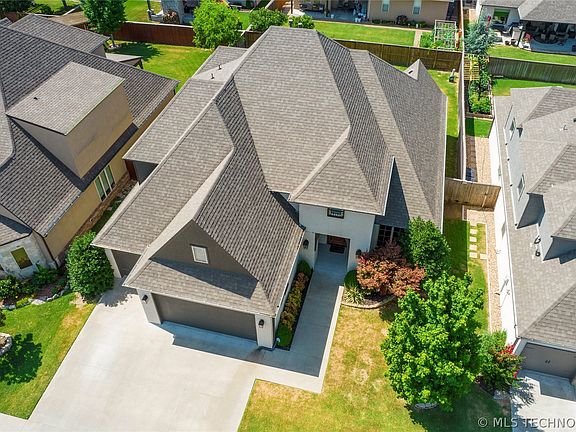 Beautiful Riverview Park Estates home with so many extras! Built in 2016 with fabulous + flexible floorplan. Amazing kitchen with butler's pantry. Outdoor kitchen. Upstairs living area with kitchenette and separate movie room. Primary suite with separate closets. Second bedroom w ensuite bathroom down. Formal dining currently being used as office. Additional office space available. Tornado shelter. 3 car garage. Outstanding neighborhood pool. Jenks Southeast Elementary. This one has it all!
