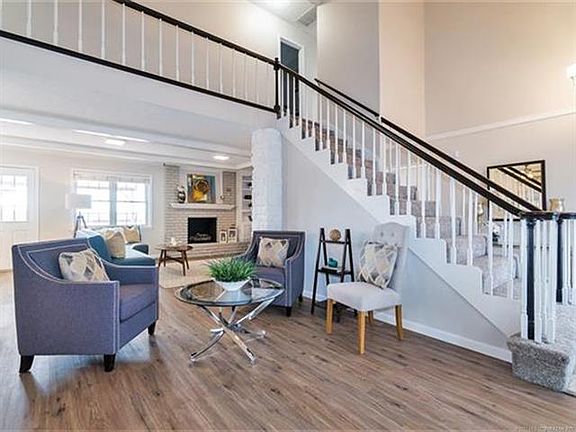 Modern South Tulsa remodel with majestic skyline view from atop the hill. Open concept living with new wood-style flooring and new carpet. Updated kitchen includes stunning marble countertops & flooring. Vaulted entry & stacked windows provide warm natural light. Large master suite down boasts sprawling deck and beautiful walk in shower. Huge guest rooms upstairs w/ balconies include a large 5th bedroom, can be MIL or game. All new paint, lighting & hardware throughout. New zoned air up. New water heater.