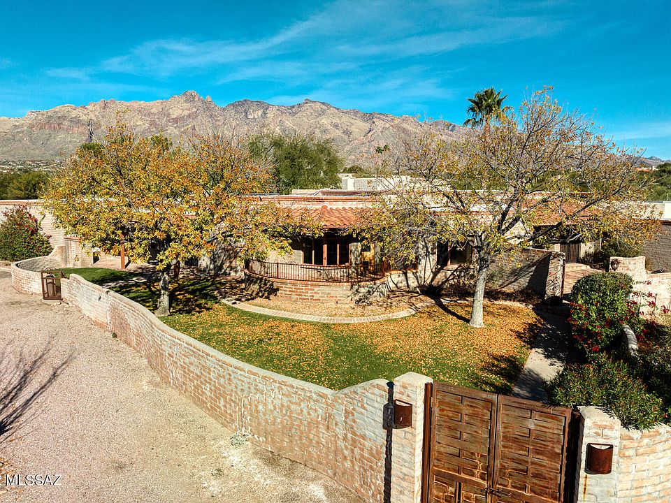 Charming hacienda style home in the heart of the Foothills. Expansive outdoor living areas, majestic panoramic views, tranquil courtyards, stunning sunset patio views. Spacious home with Joesler like design, exposed beams, private office, dine-in kitchen with matching stainless steel appliances and sub-zero refrigerator and freezer. Charming primary bedroom with beehive fireplace and private backyard access. Primary bath with soaking tub, rain shower head, and dual marble-topped vanities. Perfect for families, spacious kid wing with lounge, 3 bedrooms, unique 3 sink vanity bathroom. Private guest quarters with separate bath and entrance to pool. Resort style outdoor living, oversized pool, expansive patio areas, outdoor kitchen and fireplace.