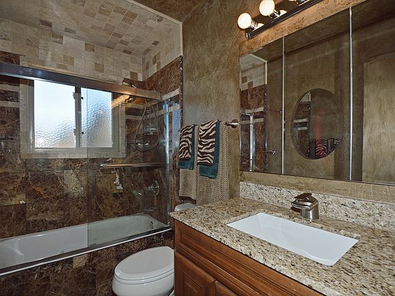 Welcome to your dream home!**Step into this fully remodeled home in the desirable Village Seven area w/ every upgrade imaginable!**Home shows like a model**improvements made in the last yr**You'll be amazed when you walk through the front door and find a fully remodeled kitchen with real marble flooring and gourmet kitchen with a huge stone island perfect for entertaining**Kitchen and living room flow together with vaulted ceilings and a dining room that walks out to a huge backyard with a covered patio** Huge stone fireplace on the lower level also walks out to the yard**The entire home has custom hand-troweled walls and ceilings that add to the character of the home**All the bathrooms have been completely remodeled with marble tile flooring and brand new vanities, counter-tops and faucets**This home has too many new features to list: All the flooring, cabinets, kitchen appliances, garage door and opener, closets, light fixtures, windows, sliding glass doors, rounded corner walls and recessed lighting have all been upgraded in the last year**Not a thing needs to be done to this immaculate home, all the work the homeowner has done to the home can now be enjoyed by your buyer for years to come**I wouldn't wait on this one, you can truly have it all in this picture-perfect home**Come see it today!
