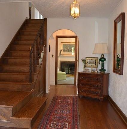 Sun Filled Rooms & Cheerful Light Decor enhance the Architectural Detail of this special French Tudor w hand cut stone Turret - Nat Woodwork on 1st - Hardwood Flrs - Rec Rm w Recessed Lighting - 5 spacious Bedrooms & 3 updated Baths on 2nd - 4 Fplcs - Central Air on 2nd with additional run to Kitchen - 2 Car Attached Garage - 2 Patios - Perennial Beds & Fenced Yard - Many Updates!