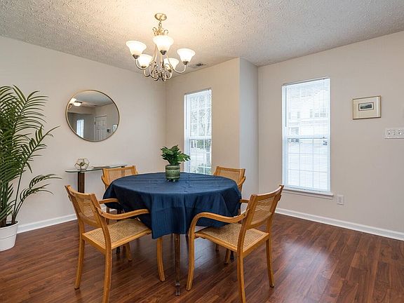 Minimal care is required with this Spiffy vinyl-wrapped 2-story home. NEW 2023 Heat Pump. Freshly painted exterior & upstairs carpet recently replaced, along with smooth surface flooring throughout the main & staircase. The spacious Downstairs layout is perfect for entertaining. Endless possibilities with a double-size living room accented by a cozy gas fireplace & an abundance of natural light. Eat-in kitchen with stainless steel appliances & dining room for when guests stop by. Gracious owner-ensuite with huge walk-in closet & vaulted ceiling. Washer, dryer & refrigerator remain. Patio and exterior storage are a good start to creating your favorite outdoor experiences. No staycations needed when you are so close to the Mountains to the Sea. All you need is your suitcase & the keys to your new home. You will be spoiled by the location. SNAP - your are in D'town Durham with entertainment & dining in 10 mins; RDU Airport, Brier Creek Shopping, & DUKE in 15 mins. Centrally located in the Triangle for under $300K. Don't let it linger. You don't want to miss this opportunity!