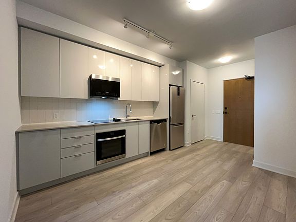 2 bedroom condo unit with 1 underground parking. Open concept design and bright unit. Brand new building: CG Tower. Very functional layout giving you two separate bedrooms and dedicated living room space separate from the kitchen and dining area. Brand new kitchen appliances and washer/dryer. 9 minutes walk to TTC subway station. Next to Aisle 24, Di Pietro's Coffee shop, and Edgeley Park. 2 stops away from York University. Heat and high speed internet are included. Renter is responsible for air conditioning, hydro and water.