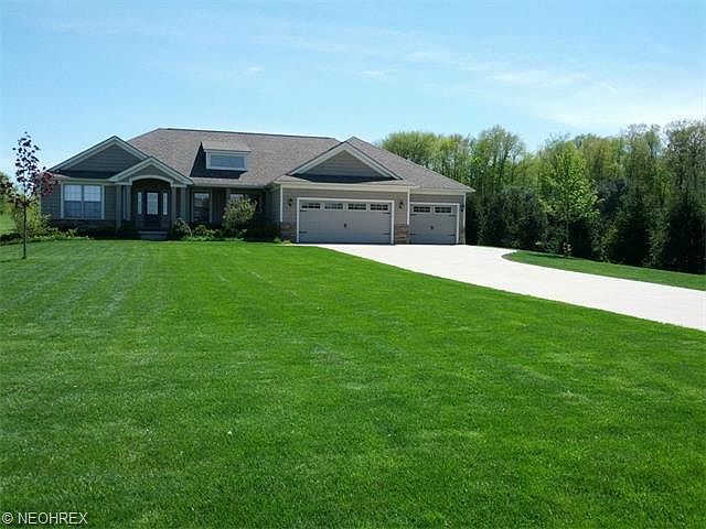 Beautiful like new 1 story home located on a .60 acre lot with rural views. Cathedral ceilings in great room, sunroom (with circle top windows) and master bedroom. Convenient split bedroom floor plan. Custom features include: extra wide trim, maple hardwood floors and cabinets rounded corner entry archways and sparkling leaded glass front door. Spacious 1st floor laundry with big windows. Fantastic oversized 3 car garage with custom designed garage doors. 12 course high block full basement offers additional 1,840 sq. ft.- perfect to finish for extra living space and storage. Enjoy the spacious country views from the stamped cement patio. Hurry and take a look - this one wont last long. 24 hour notice for showings.