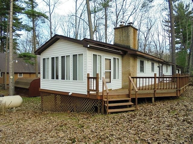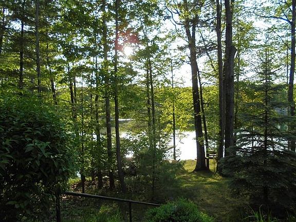 Home at no-wake Crooked Lake with walking access to the lake across the street. Open floor plan, gas fireplace, 11.5x13 sunroom with view of the lake, full unfinished walk-out basement with half bath, 10x32 front deck, detached 24x28 garage, 12x16 storage shed, corner lot. Immediate occupancy.