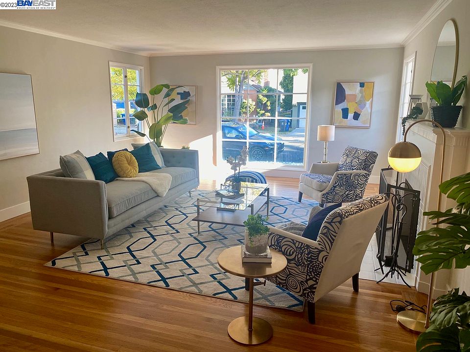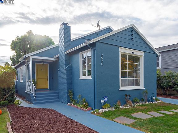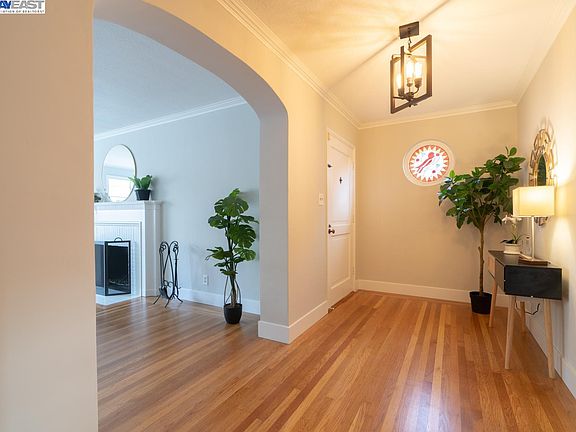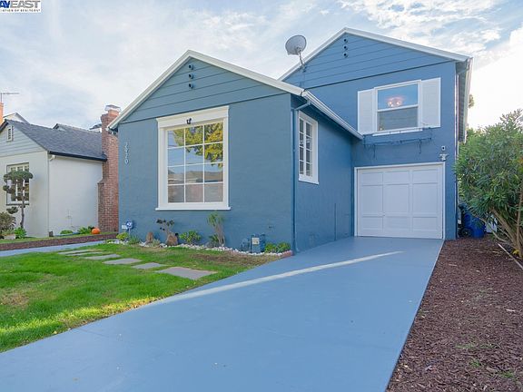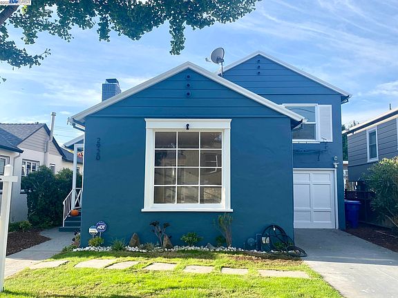 With two bedrooms and a BONUS ROOM, this charming 1940's split level home is located in the highly desirable East End neighborhood near Edison Elementary and has over 1500 sq.ft of living space on a nearly 5000 sq.ft lot. Two bedrooms and a full bathroom are on the top level with lots of storage space and newer rattan ceiling light fans. The shared bathroom has a shower over tub with frameless glass shower door. Newly finished wood floors, a spacious living room with large picture windows, gorgeous natural light and wood burning fireplace. The foyer separates the front living room with the large dining room with corner built-in cabinets next to a mirrored wall. The kitchen has white shaker cabinets, black stone counter tops, newer light fixtures, gas oven, stainless steel fridge, a breakfast nook, newer vinyl plank floors, separate rear door and kitchen sink window that overlooks the back yard. The ground level has a garage in front and a bonus room in the middle that could be used for a family room, office, or guest room. Adjacent laundry room and updated half bath as well. The large low maintenance backyard is perfect for entertaining! Enjoy Ole's Restuarant, an Alameda Tradition since 1927 nearby on Park St.