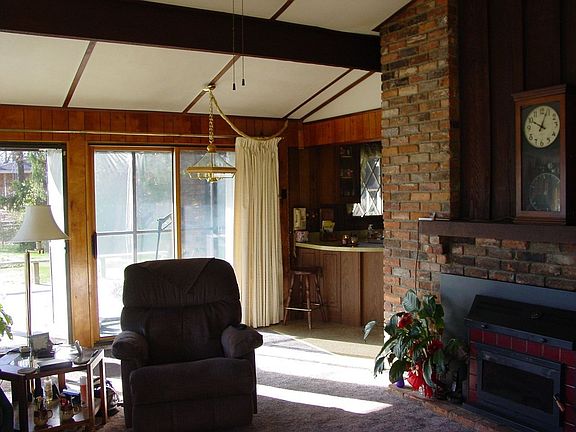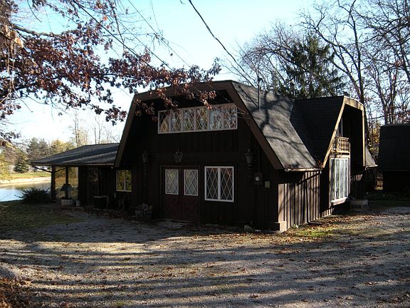 Rustic Peaceful Gated Retreat on Pond. Nestled in the trees on almost 1/2 acre. Beautiful views - a Northern Michigan feel! great room has cathedral ceiling, brick fireplace w/insert and sliders. First floor master w/ adjacent den. Circular stairs to 2 loft bedrooms. 32 x 24 garage with heated and a/c workshop. Priced to sell! 3 storage sheds.