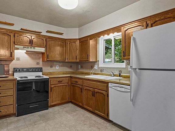 This well-maintained, one-owner property truly feels like home! Super clean and conveniently located close to everything you need. The house features two living rooms, includes washer and dryer, and a kitchen equipped with all appliances. Numerous updates have been made: vinyl windows, a Breezeair cooler, a newer forced-air furnace, and low-maintenance vinyl siding. The private backyard includes a covered patio, vinyl fencing, mature trees, a sprinkler system, and a shed. Listing price includes $5,000 carpet allowance!