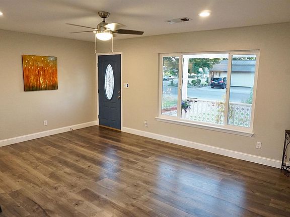 Beautifully remodeled 4 bedroom, 2 bathroom house, spacious open floor plan, new kitchen with island and fine counter tops, new bathrooms totally refinished with beautiful granite counters tops and clean modern tile and vanities, new double pane windows, Pergo floors in kitchen, living room and eating area, lush carpet in bedrooms, LED light fixtures trough out the house, new garage door, huge shaded corner lot with sprinklers system, RV Parking, too much to mention, this house is a must see.