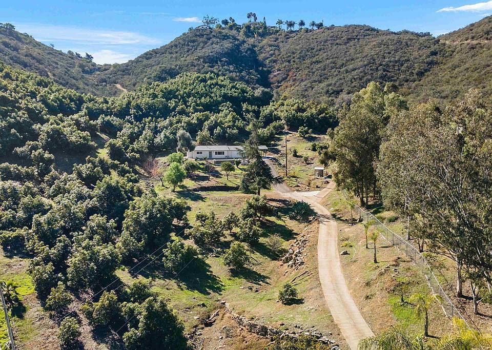 Nestled in Twin Oaks Valley of San Marcos, this quaint 3 bed 2 bath home, enjoys striking mountain and valley views. The spacious 6.38 acre lot is covered with over 500 income producing avocado trees (Approximately $60,000 in 2022) . The gated lot also offers several areas that would be perfect to build an ADU. The home has been completely remodeled with brand new vinyl flooring, updated bathrooms and an open kitchen with new appliances. Whether you are looking for an investment or a quiet place to call home, this property is a must see!