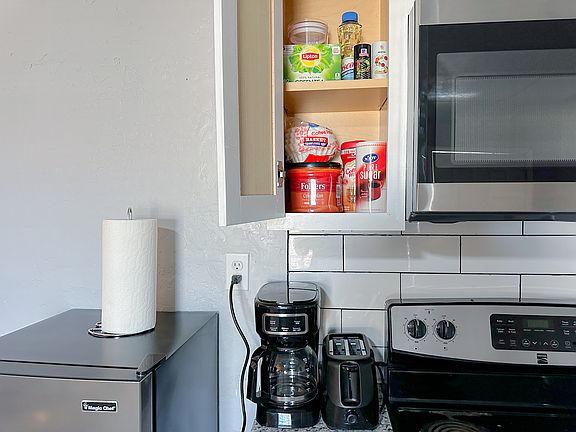 This budget friendly studio is equipped with a full kitchen, queen bed, and fast wifi - Comfy Queen-Sized Bed - Smart TV for family - Fast WiFi to stay connected with loved ones There are 4 units in this property. You have your own private studio with your own entrance, shower but there are other units next door.