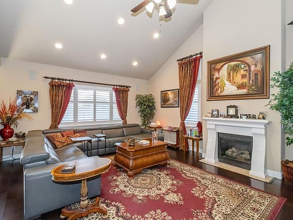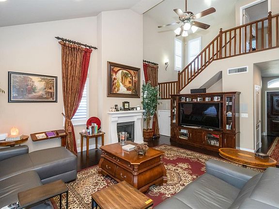 This Mansionette Palisades home has it all: Beautiful curb appeal, stone elevation, corner lot, plantation shutters, custom draperies, neutral paint, gas fireplace, vaulted ceiling, ceiling fans throughout, dark hardwood floor, surround sound, security system with remote access, whole house vacuum, jetted tubs, California Closet Concept design in all closets, and tankless hot water heater. The kitchen features granite counter-top, wet bar with wine refrigerator, dark wood cabinets, high end GE Monogram Stainless Steel appliances, 5 burner gas cook top with built in warmer, trivection oven, built in advantium microwave, travertine tile floor, center island, walk in pantry, tile back splash , and bay window. In addition to all this upstairs features three bedrooms, loft area, as well as a two car garage with utility sink and built in cabinets along with indoor washer-dryer hookup with even more storage. Make this yours before it's gone
