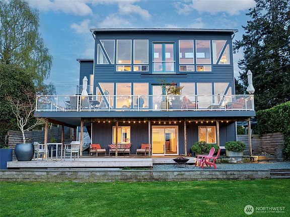 Stunning, floor-to-ceiling water views of the Guemes Channel from each room of this light-filled, mid-century modern home. Three levels of thoughtfully designed living space, this light & bright home is perfect for all who appreciate the historic waterfront. Custom kitchen with large island, ideal for entertaining. Primary suite with intimate sitting room & dreamy views. A double-sided fireplace warms the primary bedroom & ensuite bathroom, with deep soaking tub & walk-in shower. Enjoy the privacy of a fenced backyard, offering relaxation & outdoor living. Solar panels, new furnace & water heater create unparalleled energy efficiency. Whether you’re watching boats glide by or enjoying the gentle sounds of the water, you'll love this home!
