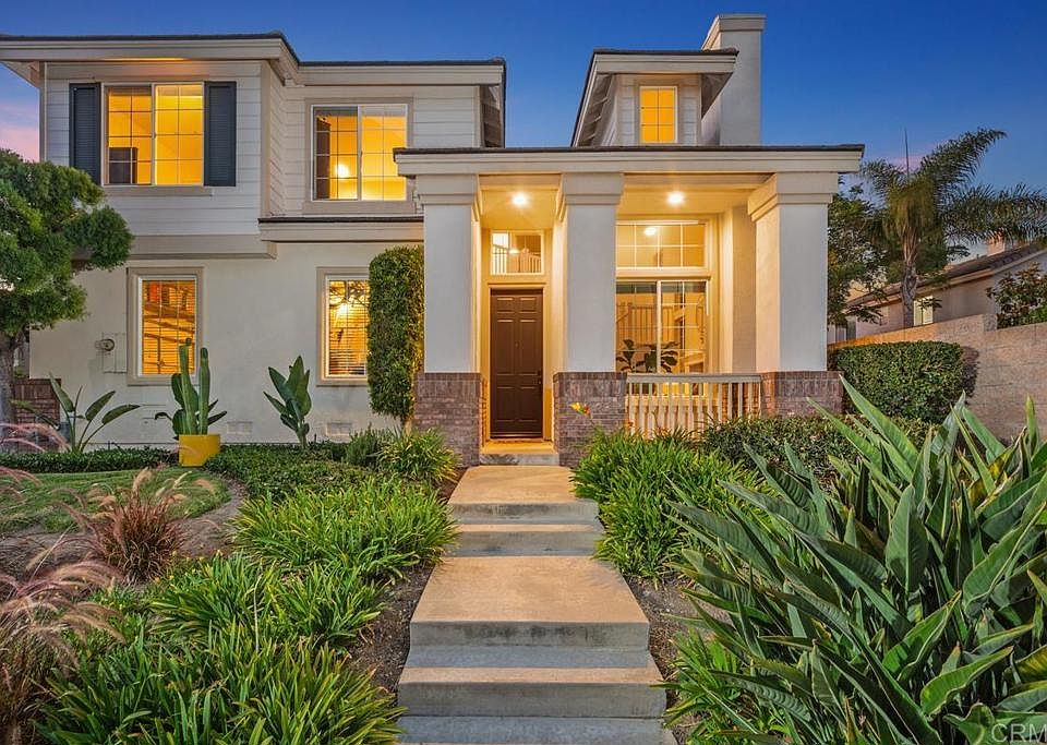 Beautiful, upgraded La Costa single family home - rare opportunity! Welcome to this stunning 3-bedroom plus loft/bonus room, 2.5-bathroom home nestled in sought-after Mar Vista at La Costa neighborhood. The light and bright home has a gorgeously remodeled kitchen with quartz counters, large sink, newer appliances, pantry and custom backsplash and also features wide plank luxury vinyl flooring throughout, including the stairs. As you enter, you're greeted by vaulted ceilings in the entry and living room, as well as a cozy fireplace, creating a warm and inviting atmosphere. The family room has large windows, an additional fireplace and is great for entertaining with sliding glass doors leading to the backyard. The private yard is low maintenance with pavers, a Trex deck, and is enhanced with charming market lights, perfect for evening gatherings and entertaining. The main level also features an upgraded, contemporary guest bathroom. Upstairs, the primary suite offers a serene retreat with its own private en-suite bathroom and spacious walk-in closet, while two additional bedrooms share a hallway bathroom, and there's a loft or bonus room (office or playroom!) and a convenient upstairs laundry room. Also equipped with 2 car garage with storage racks. Mar Vista at La Costa is a community of just 21 houses that are single family detached homes and include an HOA park, with picnic tables, adjacent to this home. Enjoy ocean-views close by and beautiful sunsets throughout this very walkable neighborhood. Just minutes away from top-rated schools, Alga Norte park, Bressi Ranch shopping/dining, Omni La Costa, the Forum and Carlsbad trails, this home is just a short drive to South Carlsbad State Beach. It offers the perfect blend of comfort and style in a highly desirable neighborhood.