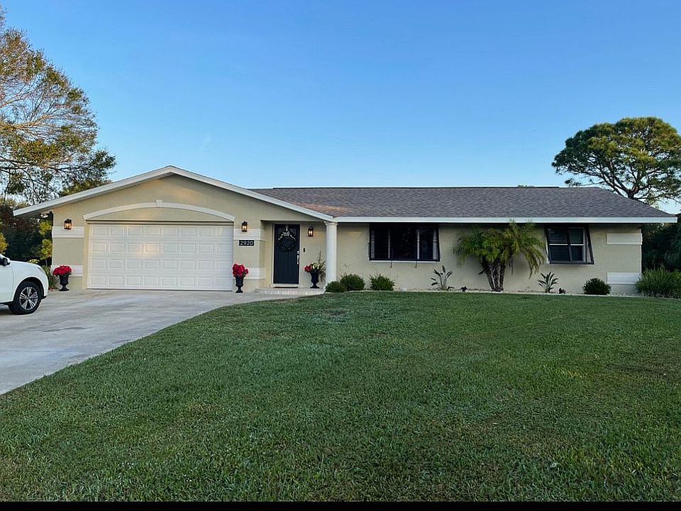 $200,000 FIRM CBS-barrel tile roof. Big pool & spa on 1 plus acre. Best lot in Pomello Ranches at the end of street bordering Habitat Golf Course on 2 sides.#1 course in Brevard Co. New Well,New Garage door, New Electric Panel, all floors are Bamboo Laminate. Woodburning fireplace in large family room.Huge master-walk-in shower. Screened Pool/Spa ( pool heater as is) never used by owner. Split plan. Tub in 2nd bath. Master has large walk in closet. Formal Dining Rm. Large Living Room. A MUST SEE