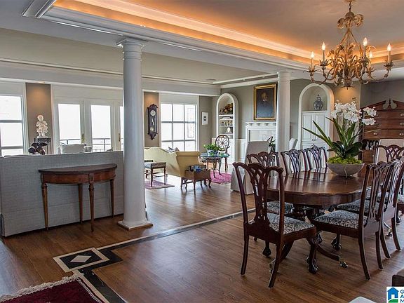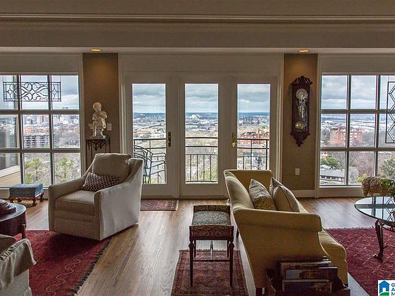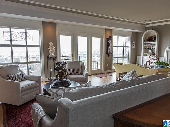 Exquisite om everyway. The BEST VIEW IN BIRMINGHAM! Unobstructed views of the skyline from the front balcony and wooded views from the back balcony. The beautiful living room features a fireplace with a great mantle and the built-in bookcases offers a great focal point. The dining room has a trey ceiling with lighting. The kitchen has great work space and tons of cabinets with new stainless appliances. There is also a breakfast area that looks down on pool, clubhouse, and mountains. The Guest bath has been redone. The Master bedroom is large and updated with the master bath having been reworked also. There is a large walk-in closet. The third bedroom has been turned into a study with bookcases in place of the closet. Can easily can be turned back into a closet. There are two secure parking spaces and a large storage room . If you have a pet there is a nice wooded walking trail you can enjoy. This building is in tip top condition top to bottom. Great views from this move in ready unit.