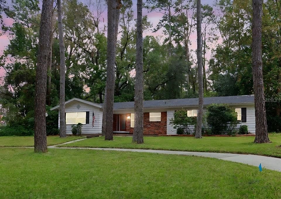 The quintessential University of Florida neighborhood of Black Acres. Situated on a spacious corner lot and only a few blocks from campus between University Avenue and SW 2ND Avenue; this 3 bedroom/2 bath home is located walking distance to UF campus, Publix, restaurants and shops and steps to the public bus route. The home is constructed of Ocala concrete blocks with brick decorative siding. This home has a renovated kitchen with newer appliances and features a large living room which connects to a Florida room. Glass sliders pocket fully to living room expanding your living space. Both bathrooms have been upgraded. Tile and laminate throughout--no carpet. Plenty of parking onsite including a circular drive and two car garage. Over $50K in updates and improvements including new roof and updated electrical system. Nice backyard has plenty of room for pets, gardening and outdoor entertainment. Great investment potential for short-term game day rentals or ideal for UF students who desire more space but want to be steps to the campus, law school, Ben Hill Griffin, O'Dome, etc.