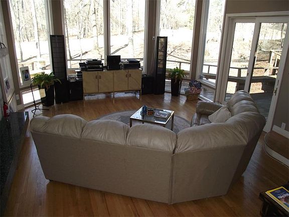 Amazing home designed/built by GT Architectural Professor based on homes viewed in France. Grand entrance. 2-sty marble entry. Master on main with sitting area, FP and spa bath. 2-sty Great Room with 2-sty FP & wall of windows overlooking golf course. Kitchen with desert ash cabinets, all appliances and breakfast room. Wrap around deck. Screened porch. Palatial banquet DR with antique FP. 2 bedrooms up, each has private bath and deck. Loft at top of stairs. Daylight terrace level being used as music studio. POTENTIAL SHORT SALE.