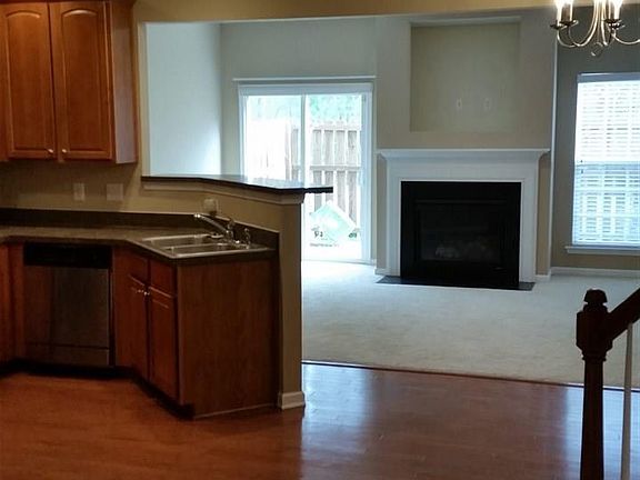 Gorgeous 3 bedroom townhome with full brick front and wooded view in back with an option to fence. Open floor plan with marble fireplace in family room and hardwood on first floor. Kitchen has maple cabinets and stainless steel appliances. Master suite has vaulted ceiling, bath with garden tub, separate shower and double sink. Plenty of upgrades. A great location with community clubhouse, pool and tennis. Pet friendly !