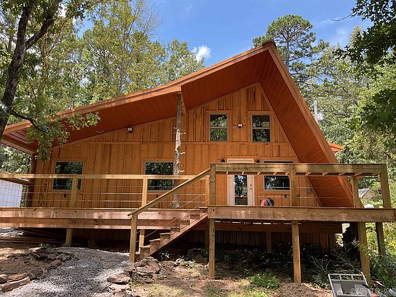 OH HOW I LOVE THIS LAKEFEONT CABIN AND SO WILL YOU. BRAND SPANKING NEW THRU OUT, FURNITURE NEVER SAT ON, BEDS NEVER SLEPT IN. IF YOU LOOKING FOR A PERSONAL HOME OR AN AIR B&B THIS IS PERFECT. This use to be an A-Frame built in 1973 but was gutted down to nothing and started over. great deck overlooking lake which has been supported for weight of a hot-tub, broad windows for viewing, remarkable craftmanship from the builder all thru this home, barn doors, great use of older woodwork that was part of the original home, a wonderful fireplace, utility room with stack washer/dryer, all new applainces. Launching ramp 6/10 of a mile. Guys this is no real estate bull hype but the real deal, come look and you will have to have it.