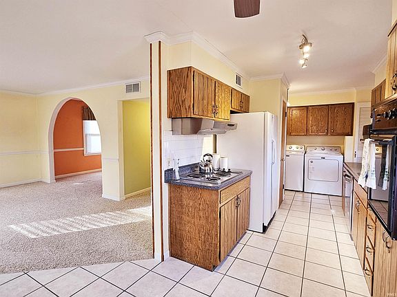 This house is on a corner lot with a large 24x24, 2 car garage. The living room, breakfast area and kitchen have crown molding. The kitchen is a galley style with an electric cooktop, wall oven, dishwasher, refrigerator and microwave. There is a den with chair rail off the living room. The hallway leads to the bathroom and 2 bedrooms. The large deck off the side of the house leads to the garage. The roof and HVAC are newer per the seller.