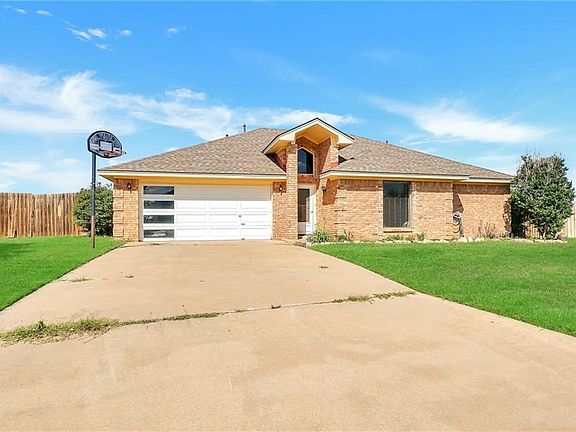 Location! Location! This lovely home is found in a Cul-de-Sac. Extra large lot size in a neighborhood north of Tamarack. It features a huge eat-in kitchen w/lots of storage inclds large island & pantry. Countertops decorated w/Saltillo style tile w/gorgeous complimentary backsplash. Kitchen inclds a beautiful bay window. Master bdrm is spacious, plenty of rm for CA King bed incld rm for sitting area. Attached Master bth has dual vanity & 2 walk-in closets has separate tub & walk-in shower. Vaulted ceiling in sizable living rm & has attractive wood built-in for extra storage & shelving. Living rm also features a lovely gas fireplace. Bdrms 2 & 3 each have 2 closets & 1 w/built in below window & the other w/built-in desk. Home throughout has beautiful solid wood doors. Furnace & A/C (2017) water heater(2020) & fence(2016). All windows except 1 above front door to be replaced by seller (already ordered).Backyard is lrg & has partially covered patio & in ground storm shelter. Avail Mid Aug
