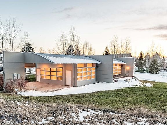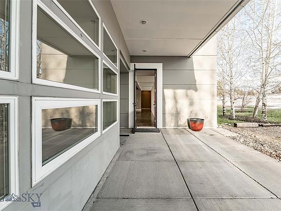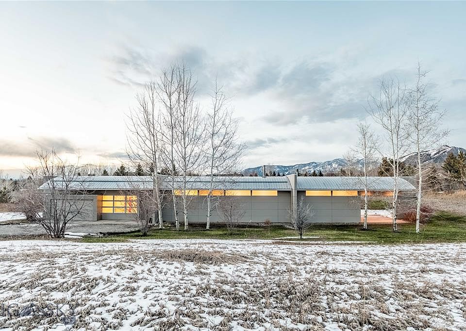 This contemporary home is an architectural statement of modernism, whose building materials & organic shapes are well suited to a mountain climate. Situated on over an acre less than 10 min. to downtown Bozeman, this single level home - designed by architect Peter Berman - with its concrete exterior and metal roof, represents a low maintenance, ease-filled lifestyle. Crossing the threshold is when you truly understand the home's presence and allure. Walls of glass create a light, airy space. The orientation of the home provides nearly every room welcoming views of a private backyard oasis with the Bridger Mountains looming large beyond. From the heart of the home with its open kitchen, dining & living space, glassed walkways lead to each bedroom wing. The master suite extends outside to include a covered patio w/ ideal area for a hot tub. The poured-concrete floor flows throughout to keep the home cozy with radiant heat in the winter, and cool in the summer.