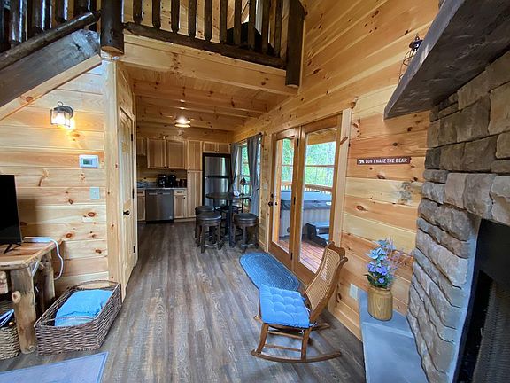 Income showing of $48,928 was for just 8 months. Cabin burned in March 2022 been under reconstruction till June this year. New build just completed. Everything is new in this charming one bed one bath cabin. Cabin has stone fireplace and beautiful vaulted ceiling in the great room. Loft area overlooks the living room with beautiful log railing up to the bedroom. Features a king size bed, closet area and t v. Kitchen has dining area sits six. Great room opens onto a covered deck with mountain views, sitting area and hot tub. Sleeper sofa gives this cabin the room to sleep 4. Cabin did $48,928 in 2021 over 8 month period. Owner used 4 months personal use that same year. Cabin burned in March 2022 and reconstruction completed June 2023. Income projection is $70,000.