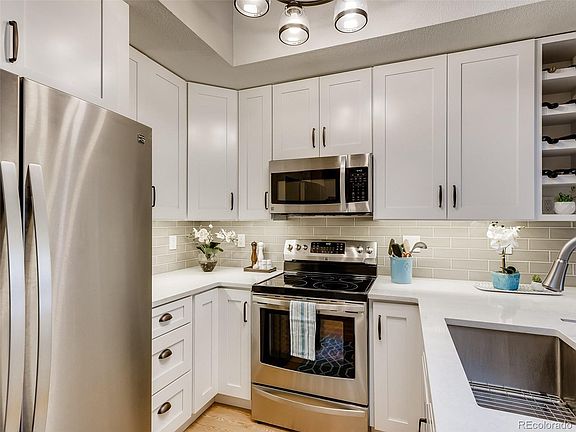 Come quick to this STUNNING Steeplechase Condo! The highlight of this home is the professionally designed and recently installed (2019) kitchen where no detail was missed! New soft close 42" white cabinets, sparkling quartz counters, glass tiled back splash, under counter adjustable lighting, deep stainless sink, stylish light fixture and hardware, AND a custom built wine rack. Add to this the open, spacious and recently painted family room with vaulted ceilings and many architectural features for display of your cherished items and you have a jaw-dropping atmosphere! Completing this area is an entertainment center with re-designed custom shelving, gas fireplace and room for a wall-mounted TV. The private master suite includes a walk-in closet and freshly painted full bathroom and the 2nd bedroom is on the other end of the family room with the freshly painted guest bath adjacent to it. And wait! The 200+ SF loft could be used as a 3rd bedroom, an office, an exercise room or an additional TV room. The laundry room is situated off the kitchen, washer/dryer included, and provides extra storage. This home has been truly well loved and maintained with the included kitchen appliances replaced 2017, furnace/AC replaced 2015, new dryer 2020. The one car garage provides even more storage. Steeplechase is conveniently located to the Platte River trails, Arapahoe CC, restaurants, retail and easy access to Santa Fe & 470. Available for quick possession.