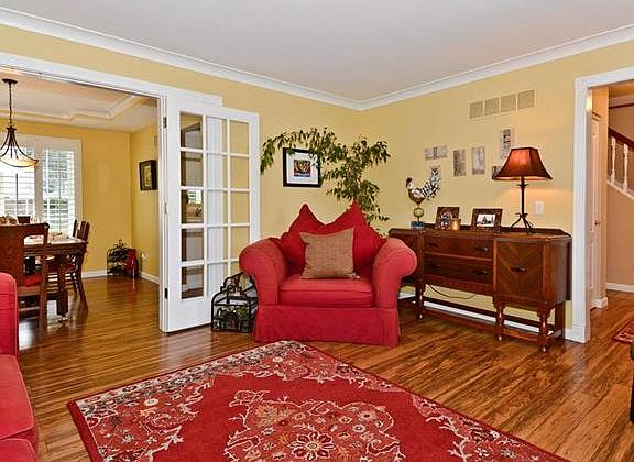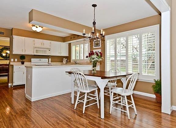 Lovely & well maintained 2 story within walking distance to local schools. Newer plantation shutters & laminate floors grace the entire main/upper levels & staircase! This spacious home features a living room with French doors leading to a formal dining room with a tray ceiling. You'll enjoy the back of the house complete with kitchen, breakfast room & great room with a wood burning fireplace. This area opens to a private, fenced in backyard with an extended patio. The master bedroom suite offers a coffered ceiling, organized walk-in closet & bath with separate tub/shower & skylight. The lower level is finished with a family room & dry bar area plus a cedar closet. The main floor laundry room is utilized as a mud room (owner prefers washer/dryer in LL). The garage is finished with drywall, has a work area & service door. Additional updates: interior painting, carpet, powder room, hall bath upstairs, tilt in windows with grills & night locks, HVAC system, hot water heater & appliances.