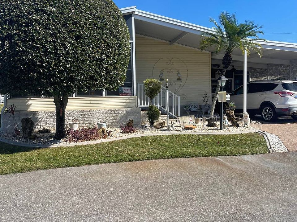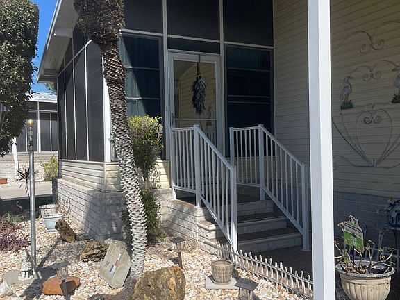 Turn-Key Home in a Desirable 55+ Golf Community - Move-In Ready! Welcome to this beautifully maintained 2003 home offering 3 bedrooms, 2 baths, and exceptional indoor-outdoor living with two lanais for year-round enjoyment. At the front of the home, you'll find a charming, smaller lanai perfect for morning coffee. The second, approximately 12' x 30' lanai is attached to the carport and features a mini-split AC/heat system, making it the ideal all-season entertaining space. It even includes an attached shed with a sink and refrigerator-perfect for hosting the gatherings you've been waiting for. Inside, this home is truly turn-key and has been freshly painted throughout. The open floor plan flows seamlessly into an expansive entertainment kitchen designed with the serious cook in mind. Enjoy new Corner Stone cabinets, backsplash, and counters, along with stainless steel appliances (2017). Just off the kitchen is a cozy breakfast area, the perfect spot for casual dining or enjoying the morning paper. The kitchen also features a newly created pantry that now includes a brand-new 2025 stack-able washer and dryer, along with a microwave-adding even more convenience and maximizing storage. Major updates include: • New whole-house AC (2025) • New stack-able washer & dryer in pantry (2025) • New water heater (2024) • Roof completed in 2006 The home's pebble driveway leads to the spacious lanai and continues to a private back patio with lovely plantings-perfect for relaxing outdoors. Vertical blinds in every room add style and privacy, and the newer furniture in the main living areas means you can simply bring your suitcase and start enjoying retirement from day one. Located in the quiet, private section of a friendly non-gated 55+ golf community, residents enjoy a large clubhouse, heated pool, and a vibrant social atmosphere-all with lower lot rent. This home truly has it all-modern updates, generous space, beautiful outdoor areas, and a community offering the lifestyle you've been dreaming of. A MUST SEE! Golf cart is negotiable with a favorable offer*All listing information is deemed reliable but not guaranteed and should be independently verified through personal inspection by appropriate professionals. Listing company cannot guarantee or warrant the accuracy of this information or condition of the property. The buyer assumes full responsibility for obtaining all current rates of lot rent, fees, and pass-on costs. Additionally, the buyer is responsible for obtaining all rules, regulations, pet policies, etc., associated with the community, park, or home from the park manager. !