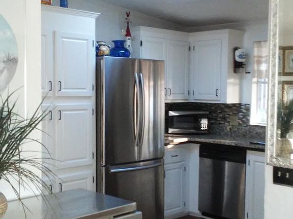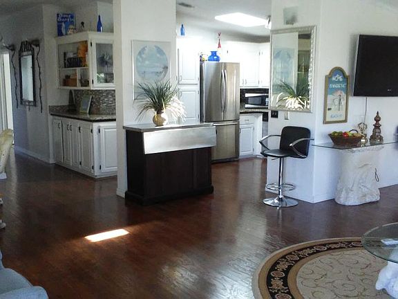 Beautiful remodeled furnished home . Many upgrades... stainless steel appliances , laminate flooring throughout, granite counter tops , sky light . water view , oversized work shed and more . Located in the most sought after active 55+ community . Monthly lot rent fee $705.. includes access to all amenities ( community center , state of art exercise room, library , billiard tables, heated pool, bocce ball, shuffleboard , horseshoes ) as well as garbage pickup and lawn maintenance . No rear neighbors, overlooks lighted fountain and pond so relaxing.