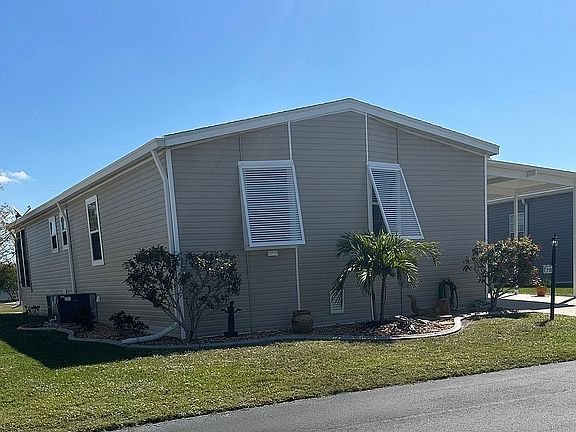 Experience living the Florida Lifestyle today in this beautiful warm and comfortable move in ready 2016 Skyline home, perfectly situated along the 8th fairway of Blue Heron Pines’ Executive Golf Course within Sun Communities. Designed with an open concept, 2 bedrooms with 2 full bathrooms. A bonus room for hobbies, library, or office space. Master bedroom is spacious, comfortably fits a king size bed with night stands and still more room. A roomie walk-in closet with closet set up for hanging and storing. Master bath has a double walk-in shower. The vanity has dual sinks and cabinet space below. A linen cabinet for storage. The kitchen has ample work area and cabinets, appliances are included. A laundry room and pantry located off the kitchen. The dining area has sliders to the screened in lanai. The home features high ceilings with crown molding and vinyl plank flooring throughout. Natural lite from the windows are tilt in with horizontal blinds. A great Lanai, overlooks the 8th fairway, for entertaining or just relaxing. The home includes a shed with carport parking. Don’t miss your opportunity to own this warm and comfortable home in a vibrant, active community! Buyer must be approved by Sun Communities. Beginning January 2025 the lot rent is $975/month. Rent includes lawn maintenance, garbage/recycle pickup, community center, pool, shuffleboard, horse shoe courts, library, exercise room, craft room, billiard room/card room, commercial kitchen and more. Call or text 847-612-6986 to see this beautifully maintained home.
