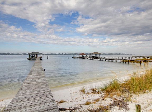 LOCATION! Over 90' of private white sandy beach on exclusive Ono Island. Completely renovated, fisherman's island dream home overlooking Bayou St. John near The Pass & Ono Bridge. Unbelievable sunsets! Home has an authentic tropical island style including covered boathouse (10,000 lb. lift with new cables), outdoor shower, over-the-top lighting, bulkhead with spacious deck & stainless cable system. A palette of soft white and grey, the home is complete with Statuarietto Extra marble, stainless appliances, large pantry, mosaic tile backsplash, white oak flooring, shiplap walls, bunk bed cubby, epoxy shield garage floors, exterior-stucco on Duroc, paved drive. A true restful, peaceful waterfront perch-come fish for your supper.
