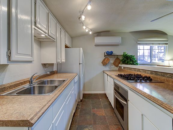 Quaint country cabin in the heart of Silverado. Entry has a raised, paneled entry door w/ leaded glass window. Living room features a vaulted ceiling w/ skylight, upgraded slate flooring and ceiling fan. Kitchen has a propane stove, electric oven, refrigerator, ample cabinets and track lighting. Bedroom laminate wood flooring, ceiling fan, skylight and blinds. Full bathroom has tile flooring and shower with tub. Separate, interior laundry room includes stacked washer and dryer. Home enjoys a ...