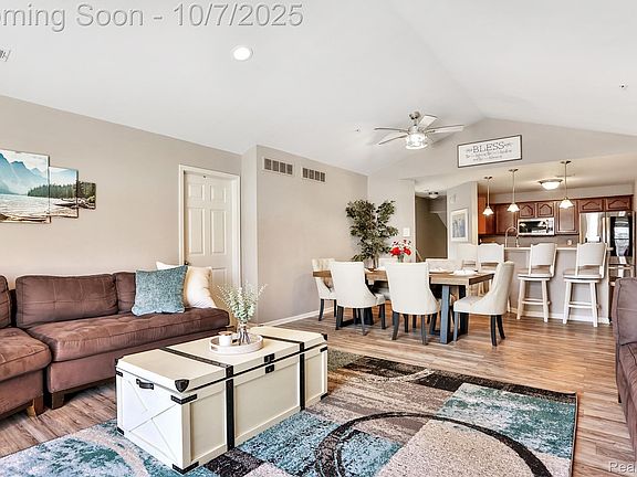Spacious 3-Bedroom Ranch Condo with Vaulted Ceilings & Modern Updates! Welcome to this beautifully updated 3-bedroom, 2-bath upper-unit ranch condo in a serene community featuring ponds, fountains, and sidewalks. This desirable end-unit offers an open floor plan with vaulted ceilings, fresh paint, new flooring in the great room and kitchen, and most light fixtures updated throughout. The large great room is perfect for entertaining, complete with a cozy gas fireplace and door wall leading to a private balcony. The kitchen is equipped with brand-new LG stainless steel appliances, while the convenient laundry area includes a washer and dryer. The primary suite features a private bath and plenty of closet space. Two additional nicely sized bedrooms provide versatility for family, guests, or a home office. Enjoy the added bonus of a partially finished basement with an additional storage room and direct access to a 2-car attached garage. Community amenities include a clubhouse with pool and hot tub, making it easy to relax and unwind. Immediate occupancy available and a motivated seller make this a must-see opportunity!